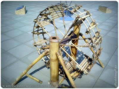 ออกมาด้านนอก ก็จะมีประติมากรรมพวกเครื่องมือเครื่องใช้พื้นบ้านในสมัยโบราณ