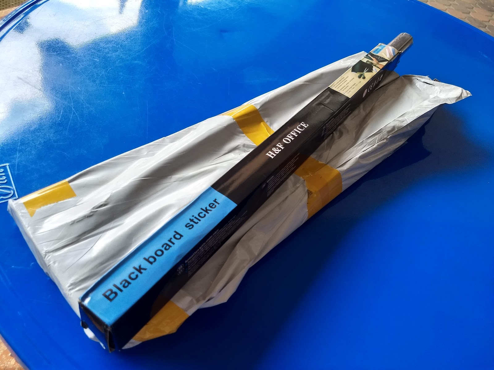สติกเกอร์กระดานดำ เอาไปแปะผนังได้ สั่งจาก Shopee มาม้วนละ 99 บาท (60x200 cm) สั่งมา 6 ม้วน เป็นเงิน 594 บาท